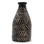 The vases are made of terracotta, a type of clay, shaped into various shapes and sizes. The vases are decorated with various patterns inspired by the rich cultural heritage of Indonesia. The designs range from simple geometric patterns to natural motifs. Painted in neutral colours – white, cream and black.