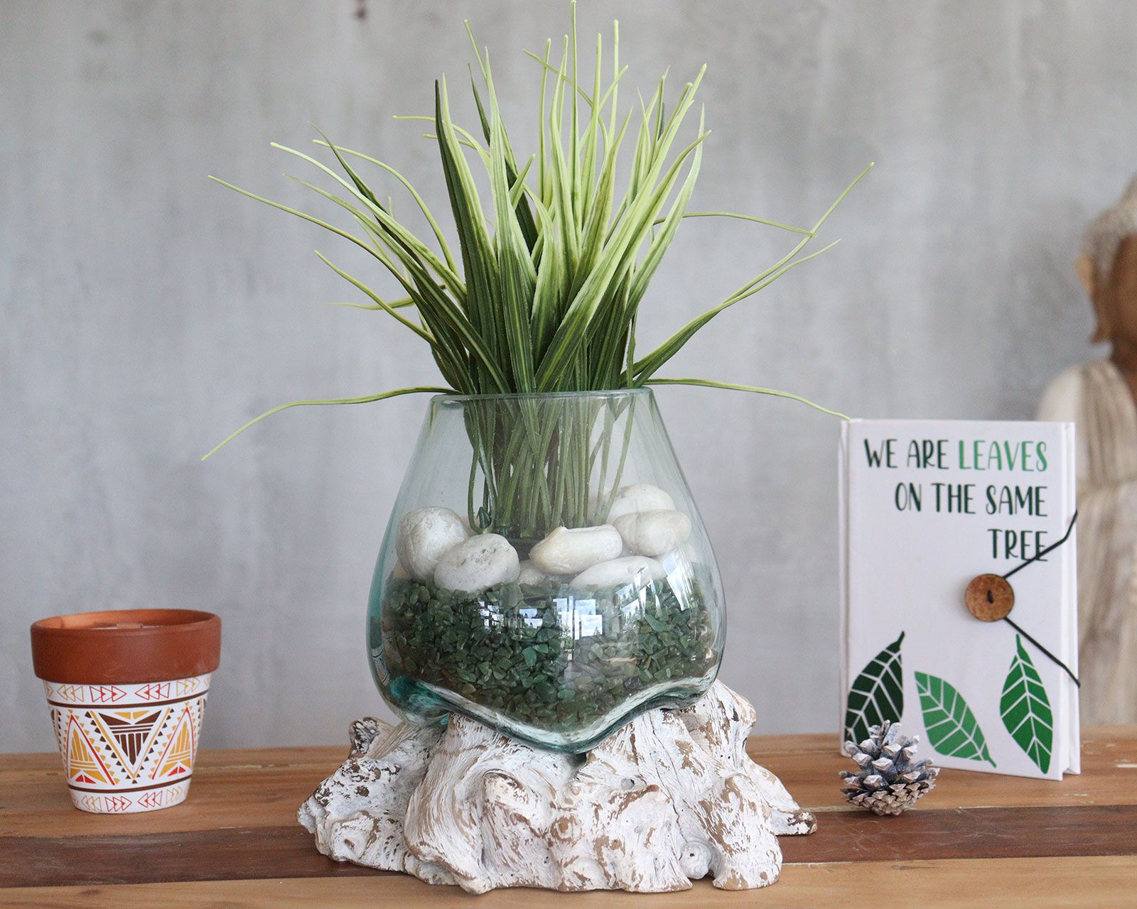 They are crafted using a natural product by using hand tools in the traditional Balinese way. Each item is unique as they are made from natural sustainable Gamal wood and the recycled glass is shaped to suit which add to its authenticity, your customer will love it. Bring nature inside with these absolutely beautiful (and affordable) natural works of art, which your customers are really going to want to own.