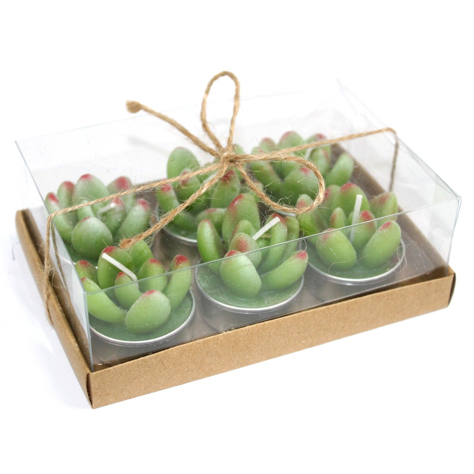 Set of 6 Succulent Cactus Tealights in Gift Box