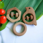 Neem Wooden Rattles & Teethers – Sparrow, Hexagon & Ring Shapes
