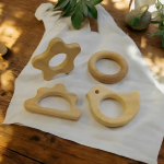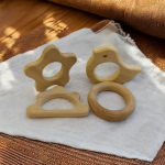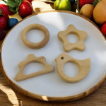 Pack of 4 Neem Wooden Teethers For Babies of Age 0 To 3 Years | Ring, Flower, Dove & Cloud Shapes