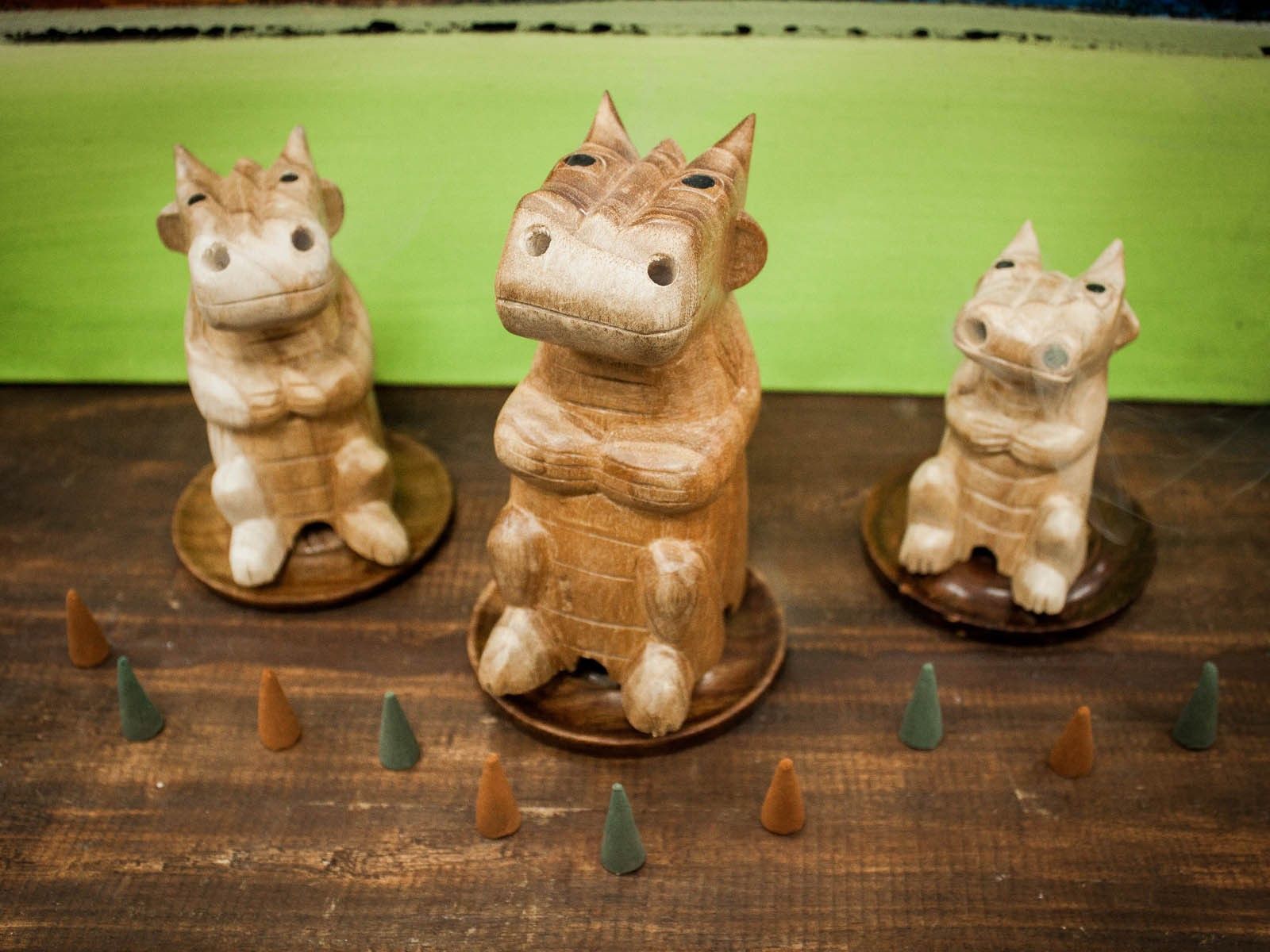 Wooden Carved Incense Burner – Med Dragon