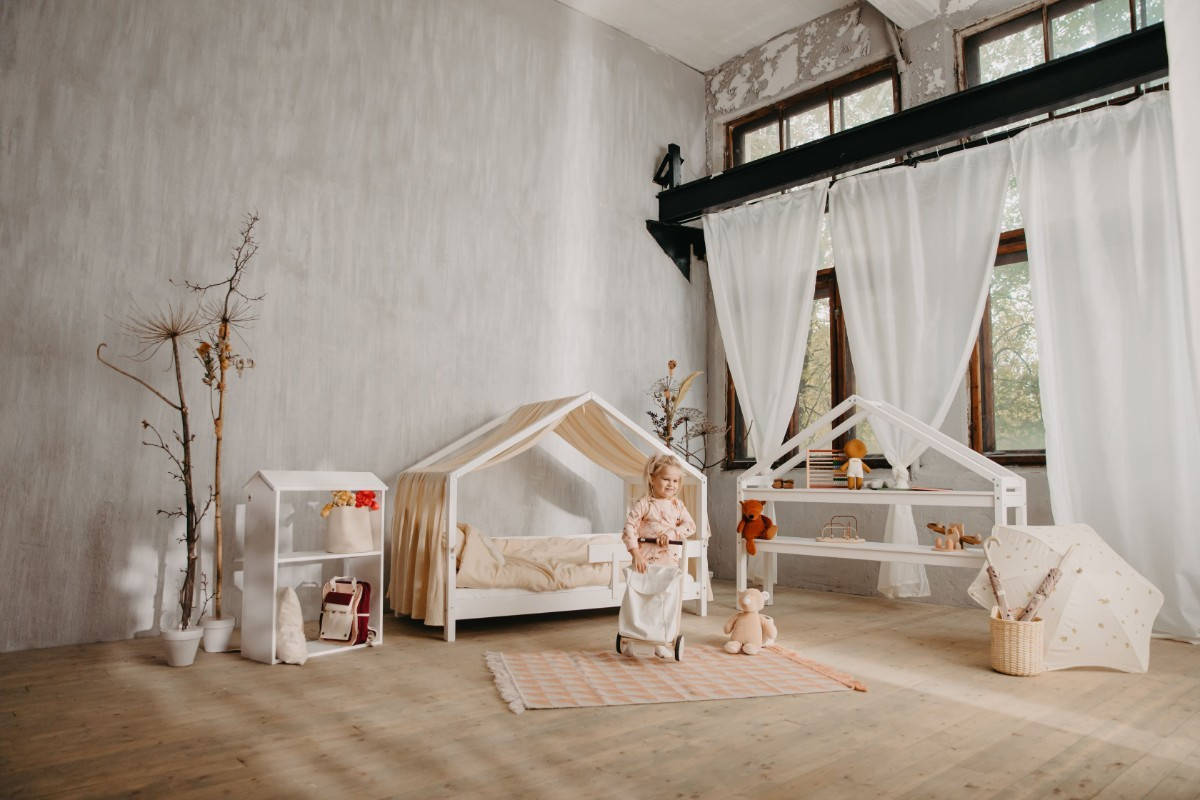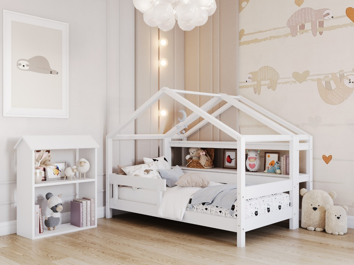 This small house-shaped shelf adds a playful touch to your child’s room while providing functional storage space for books, toys, and other small items.