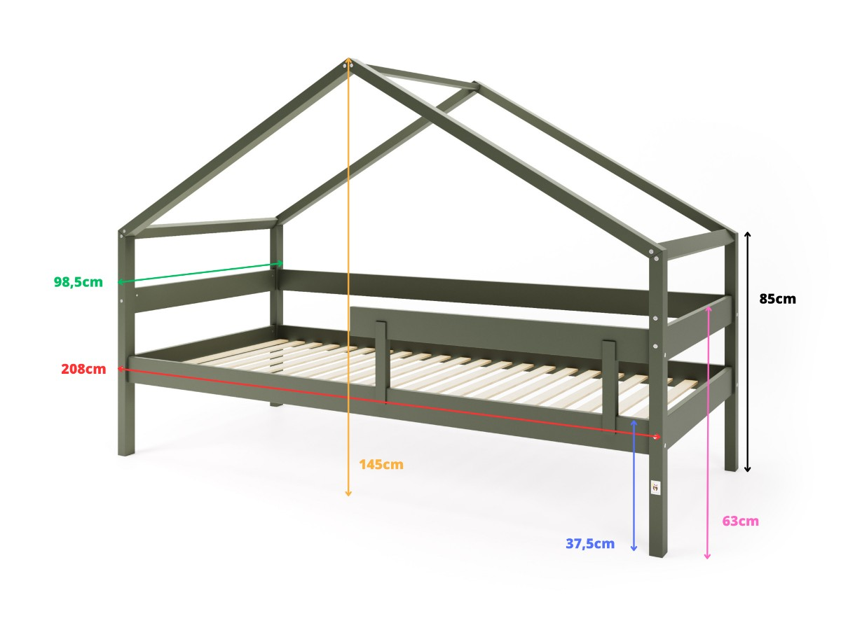 For the safety of your child, it is possible to attach the side of the guard (included) by locking it on one side or the other of the YappyHytte200cm house bed.