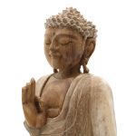 Hand Carved Buddha Statue – 30cm Teaching Transmission – Whitewash is carved by hand from Suar wood using tools in the traditional Balinese way, bringing each detail to life in a three-dimensional work of art.