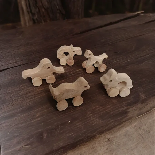 Neem Wooden Wheel Toys of 5 Beautiful Shapes for Toddlers
