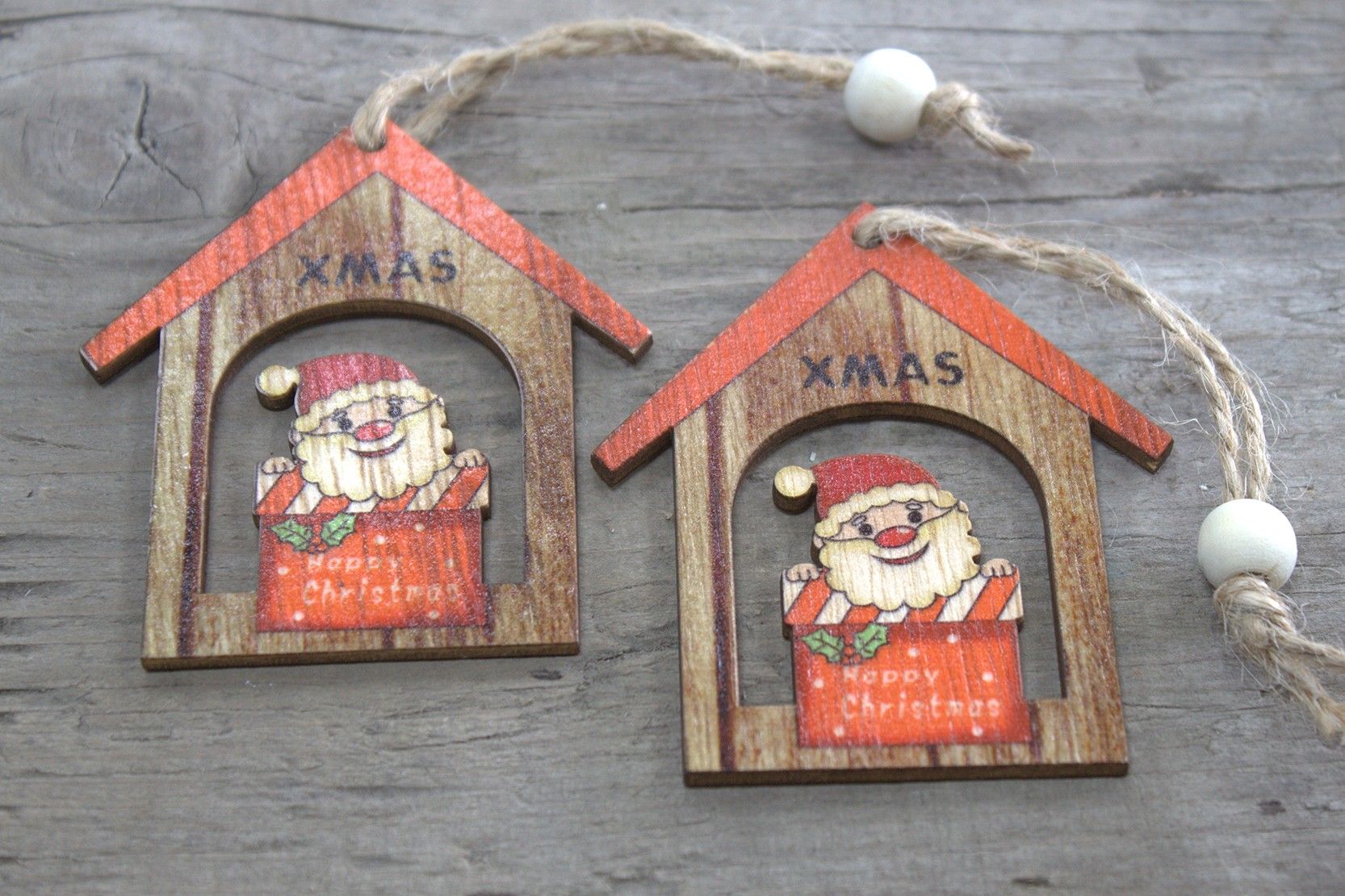 Pack of 2 Christmas Wooden Craft Decoration – Xmas Santa Gift