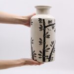 The vases are made of terracotta, a type of clay, shaped into various shapes and sizes. The vases are decorated with various patterns inspired by the rich cultural heritage of Indonesia. The designs range from simple geometric patterns to natural motifs. Painted in neutral colours – white, cream and black.