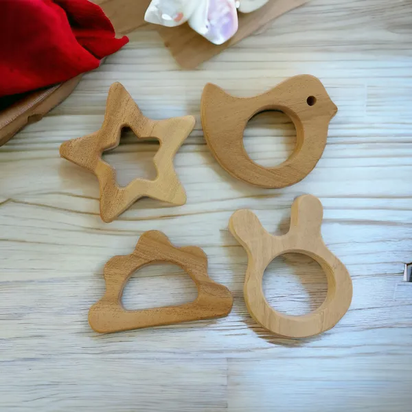 Neem Wooden Teethers For Babies Of Age 0 To 3 Years | Star,Cloud,Dove&Bunny Shapes