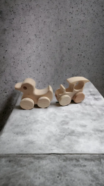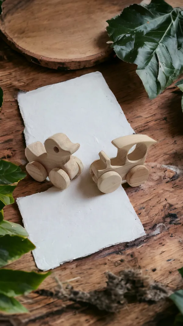 Pack of 2 Beautiful Neem Wooden Wheel Toys – Train & Duck Shapes