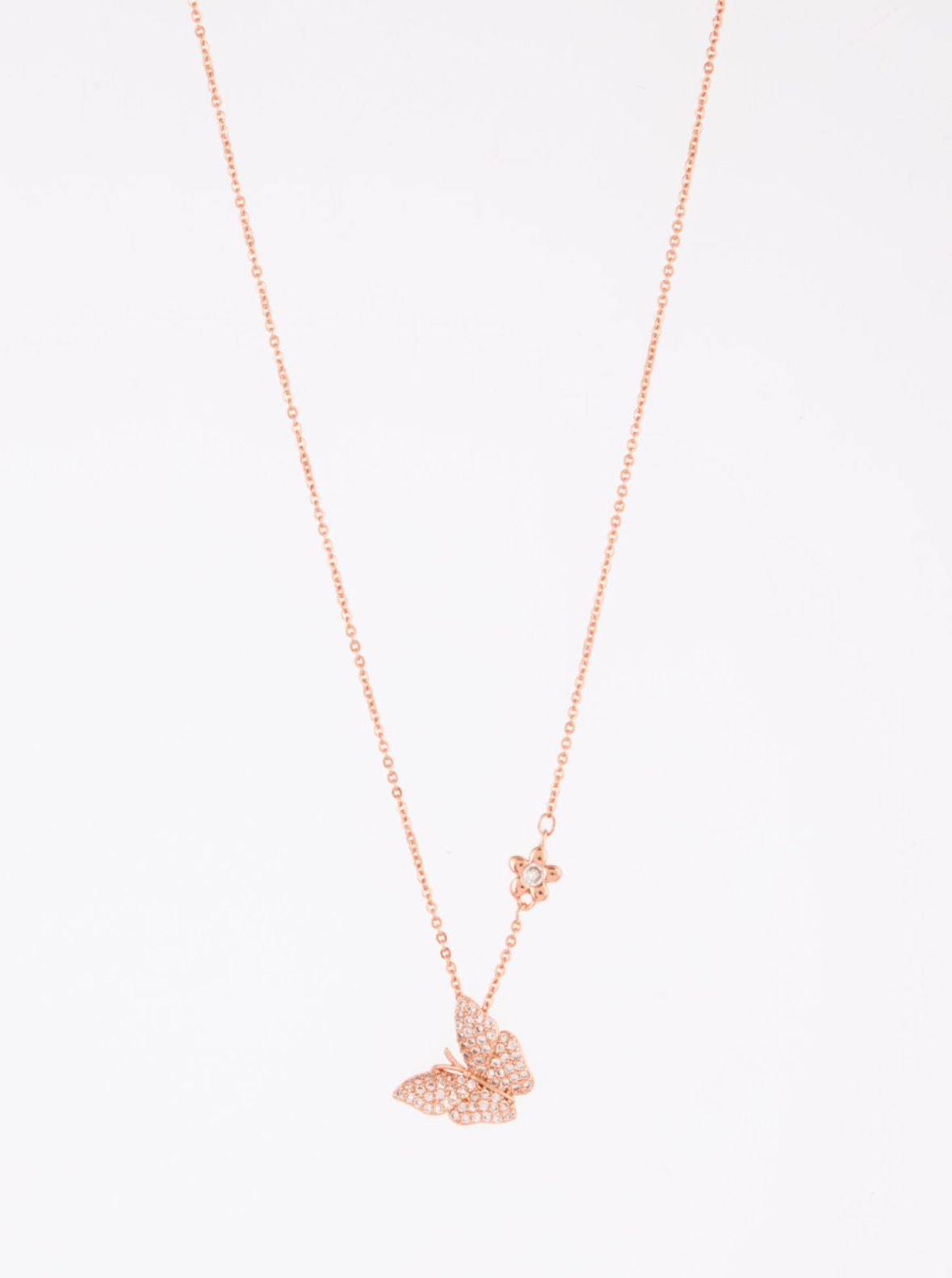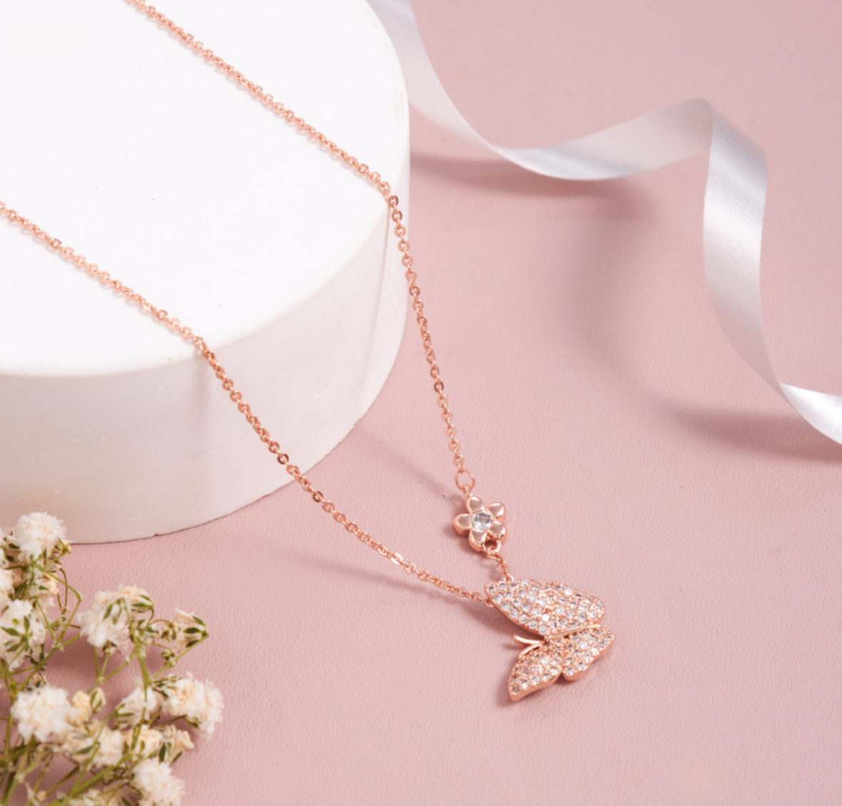 Butterfly Zircon Drop Pendant Necklace Pearl Flowers Chain Necklace for Women Diamond Gold-plated Plated Stainless Steel Necklace