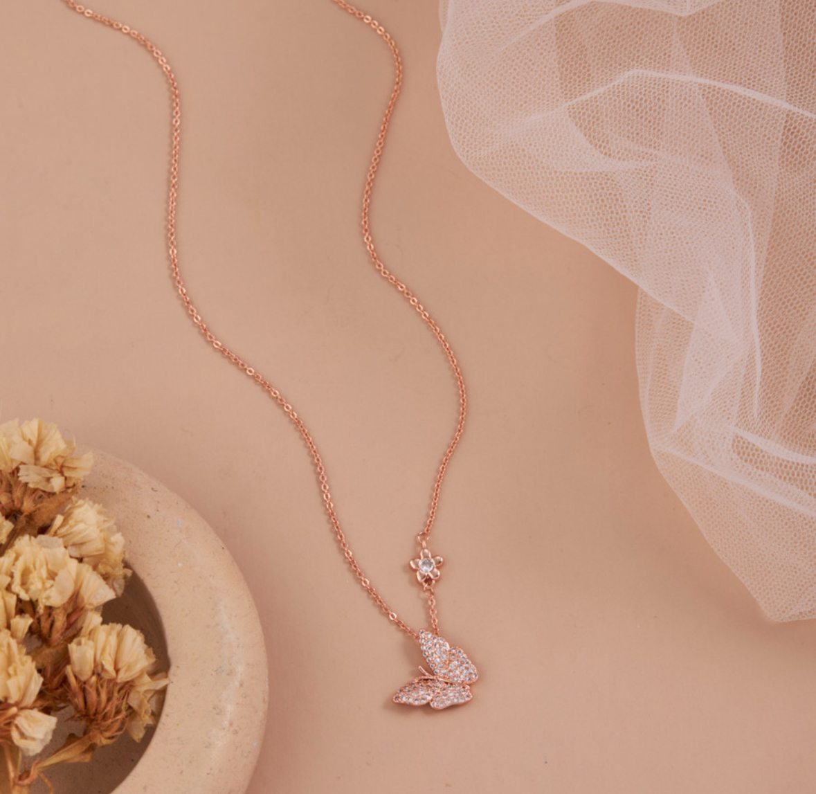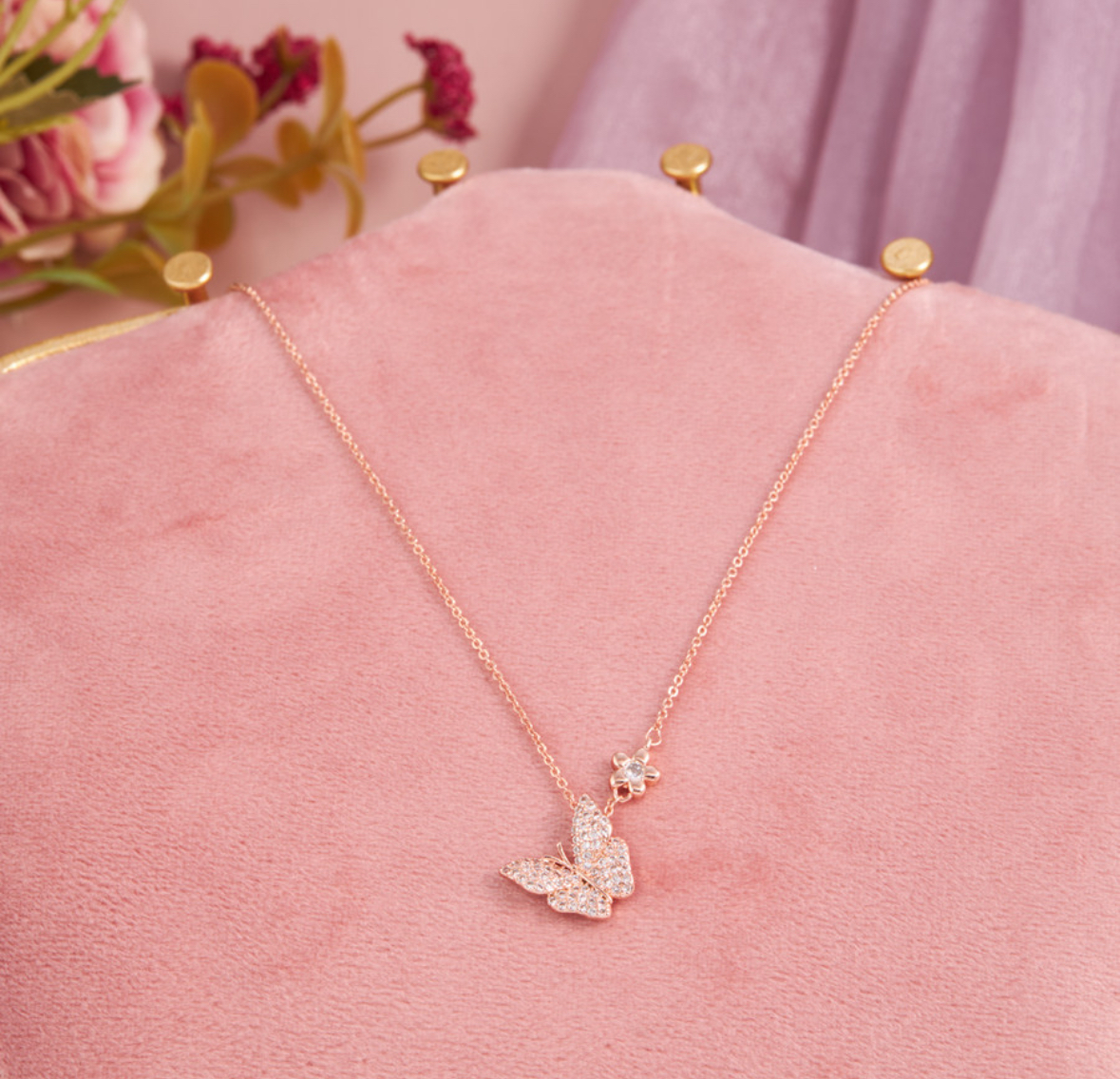 Trendy Stylish Elegance Premium Butterfly Design Pendant For Girls & Women Brass, Stainless Steel Necklace